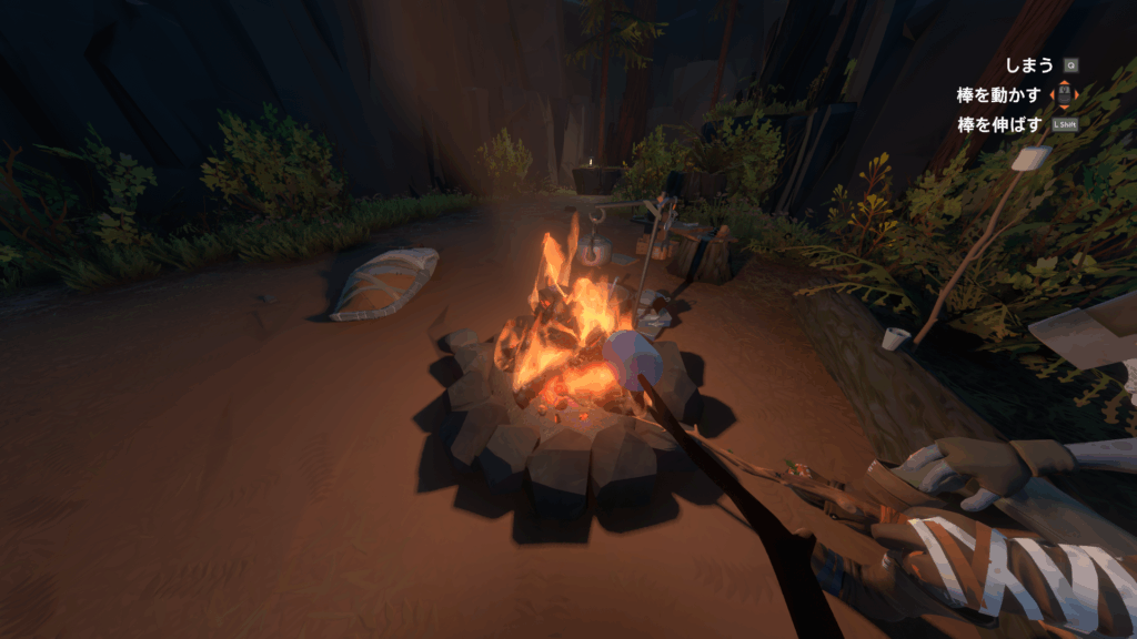 ゲーム開始時、特にムービーとかがあるわけでもなくいきなり焚き火の前に放り出されます。